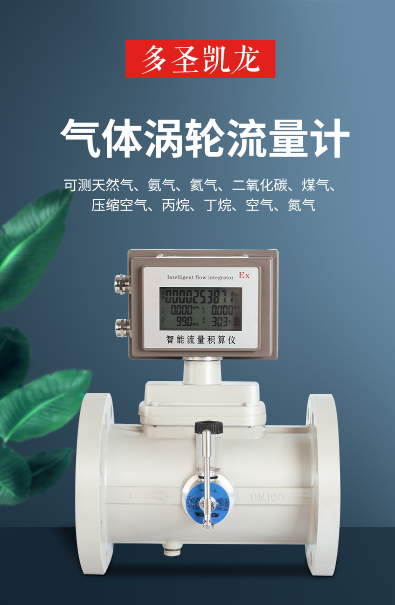 測量氦氣用什麽流量計?氦氣是一種惰性氣體,測量氦氣可用的流量計很多,如渦街、旋進旋渦、熱式氣體質量、氣體超聲波、氣體渦輪等,多聖凱龍主要推薦您使用氣體渦輪流量計,爲什麽呢?氣體渦輪流量計結構簡單、安裝使用方便、量程寬、價格适中、性價比高。