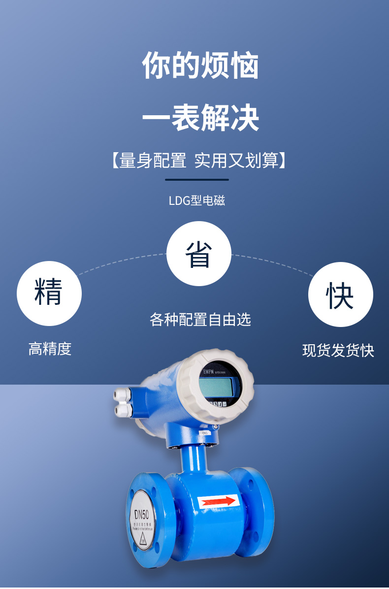 電磁流量計(Electromagnetic Flowmeters,簡稱EMF)是20世紀50~60年代随着電子技術的發展而迅速發展起來的新型流量測量儀表。 它是應用電磁感應原理, 根據導電流體通過外加磁場時感生的電動勢來測量導電流體流量的一種儀表。